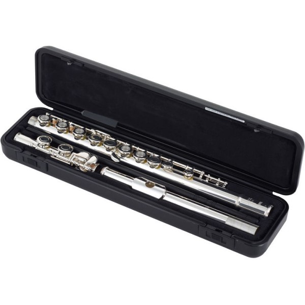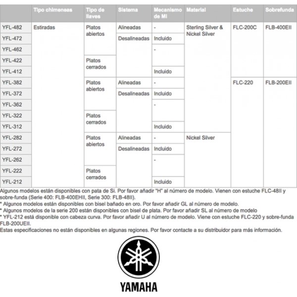 Flauta travesera YFL-282 de Yamaha. Esta modelo pertenece a la serie 200, en los que podemos encontrar flautas de estudio o estandar. En los cuales estos modelos se diferencian por sus caracteristicas en los platos, en la alineación de la flauta o los mecanismos que incorporan. Dentro de esta serie tambien hay minimas diferencias en las que tener encuenta, pero específicamente en este modelo YFL-282 contiene platos abiertos y llaves alineadas.